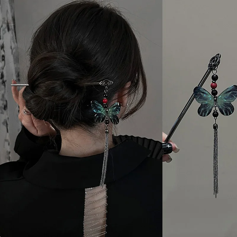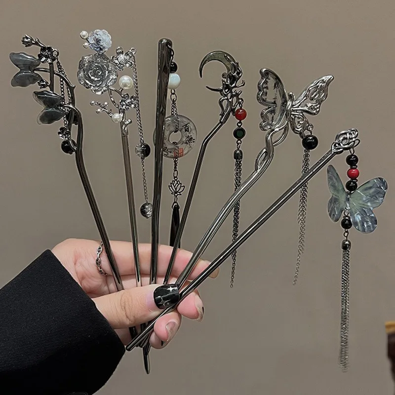 أكسسوار شعر نسائي صيني أنيق ، شرابة معدنية هانفو الرجعية ، تنورة طويلة ، هدية مطابقة يومية ، إبر شعر للفتيات ، عصا شعر ، 1: