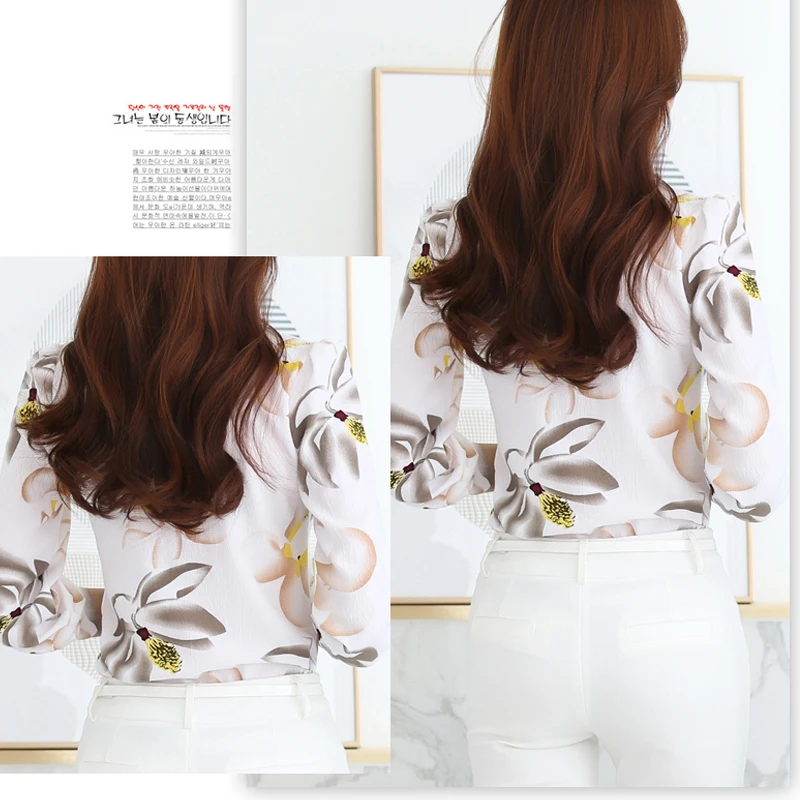 بلوزة شيفون نسائية بأكمام طويلة، بلايز برقبة على شكل حرف V، قميص بقصة ضيقة، ملابس مطبوعة على الموضة للسيدات، ربيع 2024 جديد، 882G