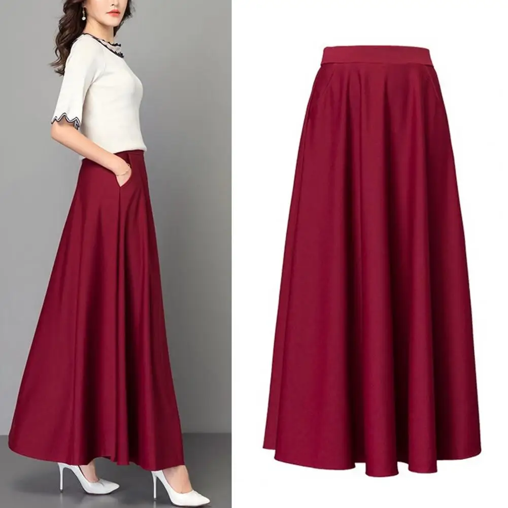 تنورة طويلة أنيقة عالية الخصر مع تحكم في البطن للنساء ، جيوب صورة ظلية ، أحادية اللون أنيقة ، على شكل حرف A ، سيدة