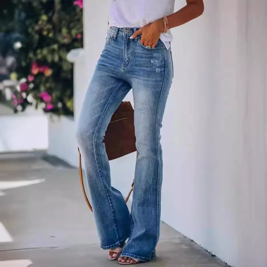 جينز نسائي مبيض عالي الخصر واسع ، بنطلون جينز مغسول ، جيوب كاملة الطول ، ذبابة عتيقة ، فضفاضة ، ذبابة صلبة