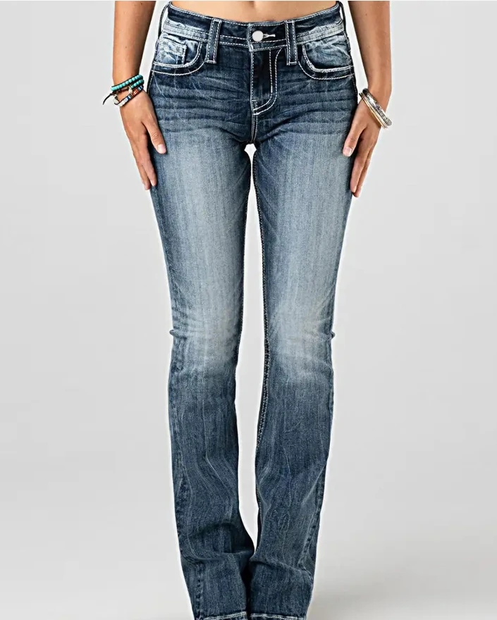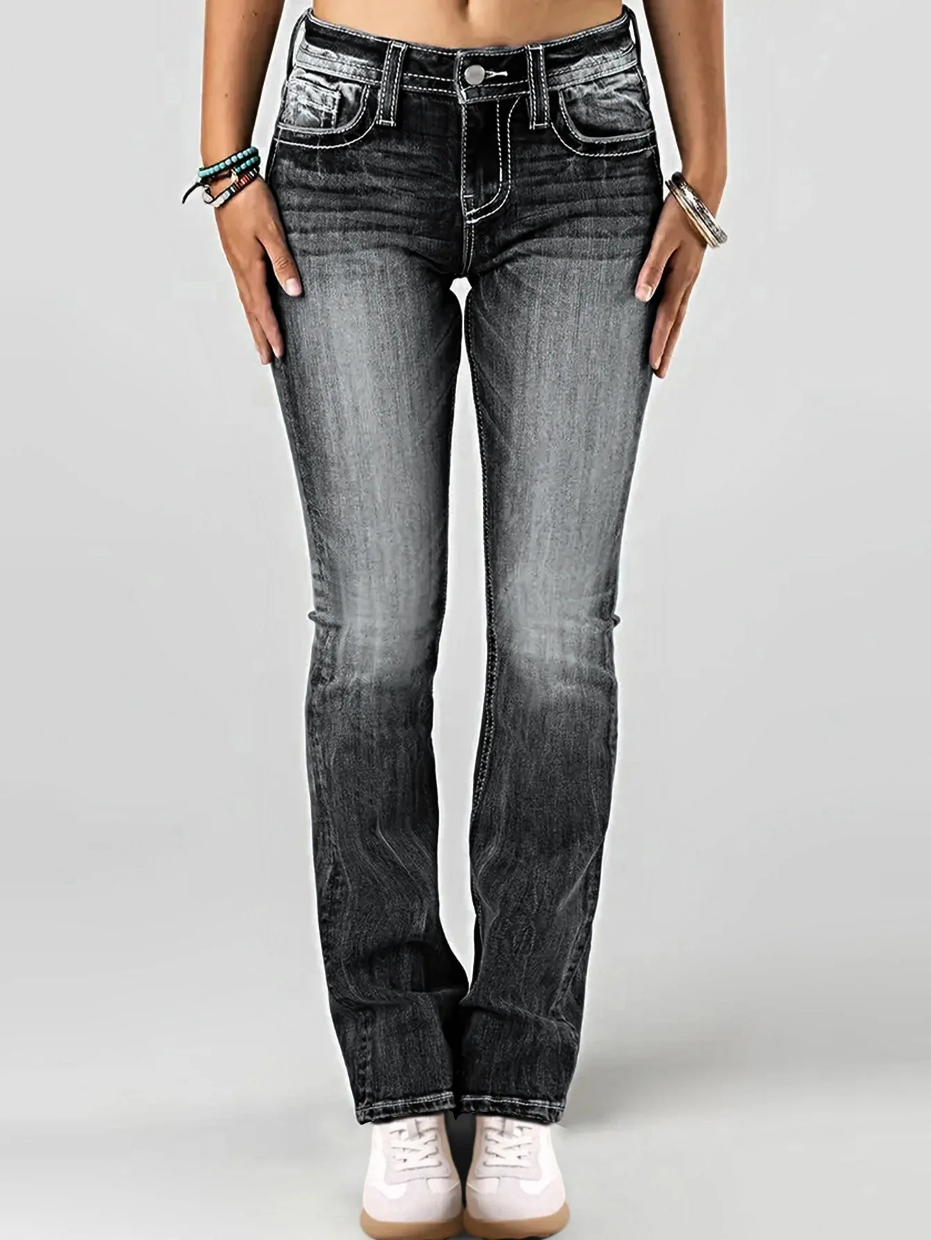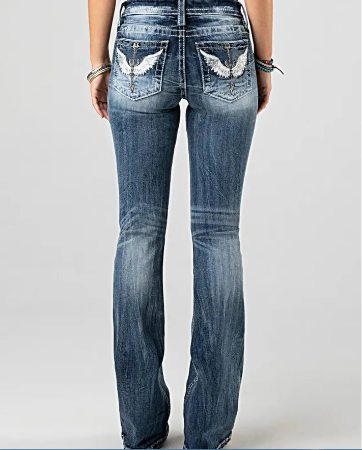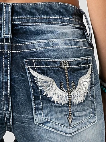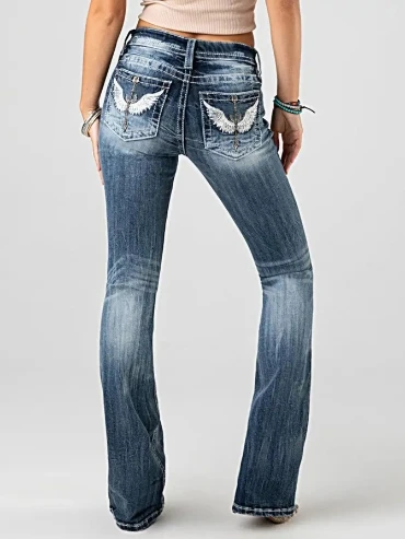 Jeans Y2K Casual Tight Low Waisted Elastic Jeans Embroidered Retro Pockets Women’s Elastic Waisted Micro Flared Denim Pants