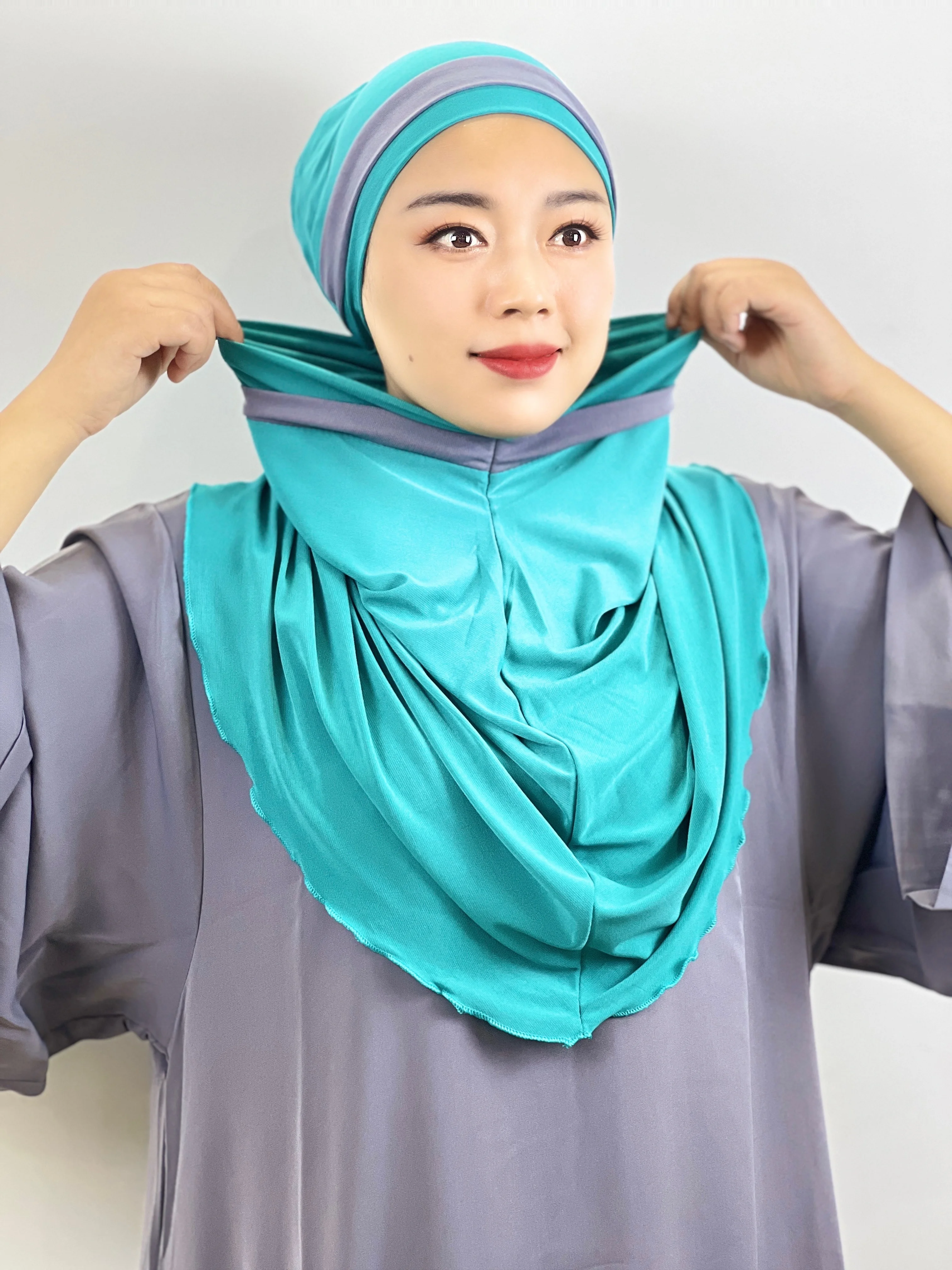 حجاب اسلامي توربان للمحجبات وشاح حجاب نسائي طرح للحجاب توربان نسائي حجابات مع طاقية أميرة الحجاب النساء الحجاب الإسلامي 2 في 1 الحجاب وشاح 2 قطعة الحجاب الإسلامي الأوشحة مخطط شال جيرسي العمامة