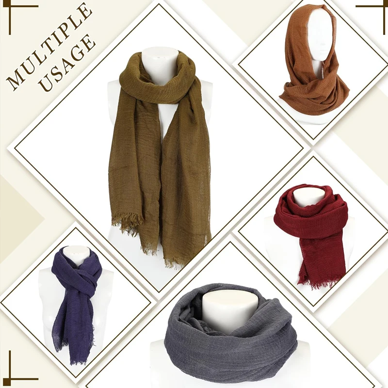 ناعمة ومريحة: هذه الأوشحة مصنوعة من القطن والكتان ، خفيفة الوزن ، ناعمة ، صديقة للجلد ، مريحة ولا تشعر بالرائحة. مجموعة الأوشحة بـ 6 ألوان لتختار أو تختار قطعة واحدة ، يرجى الرجوع إلى المعلومات التفصيلية ، بما يكفي لتلبية احتياجاتك