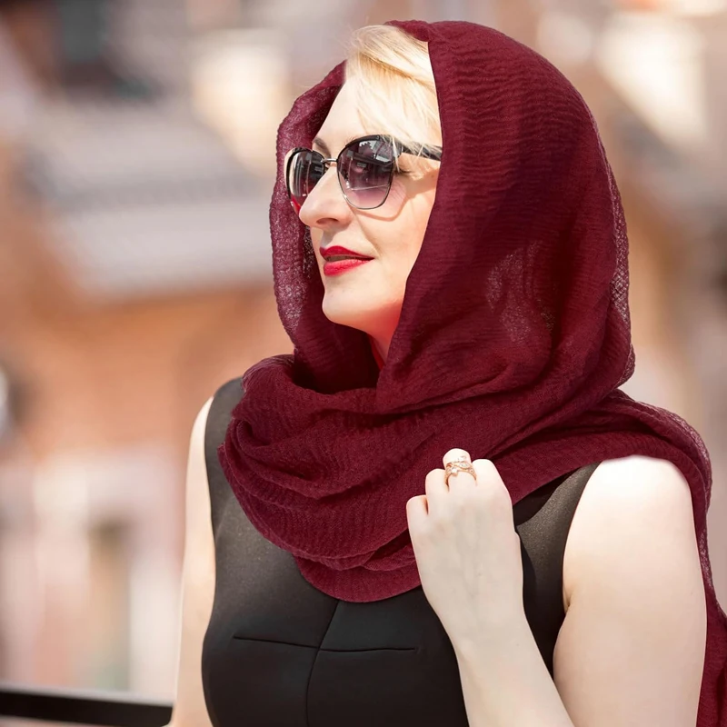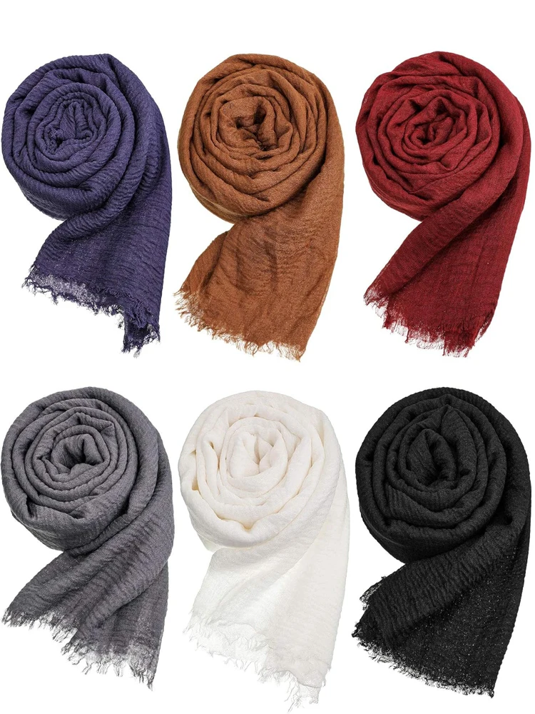 6: وشاح حجاب نسائي وشاح حجاب من مزيج القطن وشاح مجعد وشاح للرأس للمواسم الإسلامية جلباب رمضان