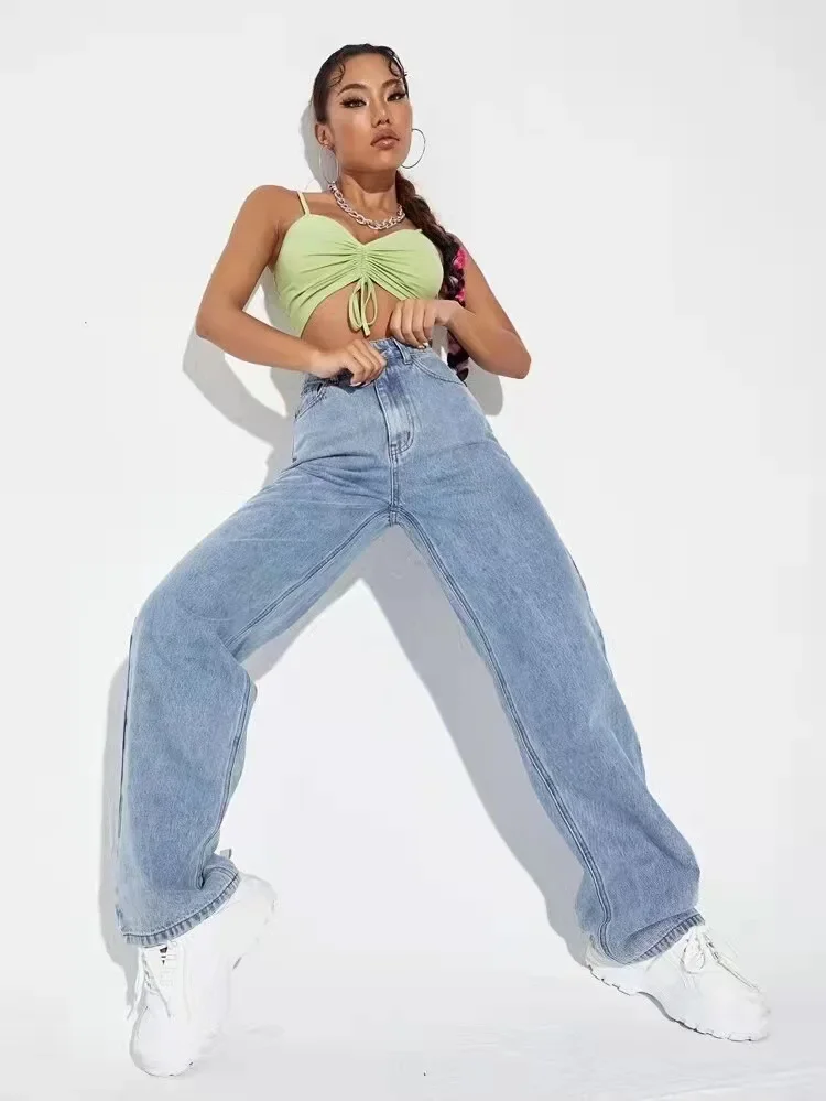 - نمط الجينز: بنطال بأرجل واسعة