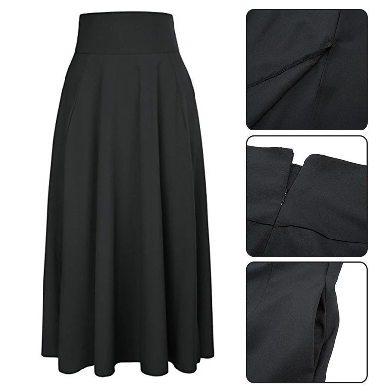 عالية الخصر مطوي التنانير الطويلة النساء خمر متوهج تنورة كاملة سوينغ فستان ستان