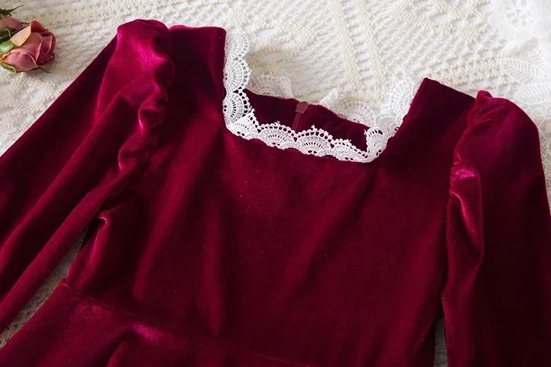 - Girls’ retro palace style dress: Autumn Winter Christmas Dress