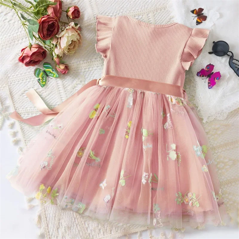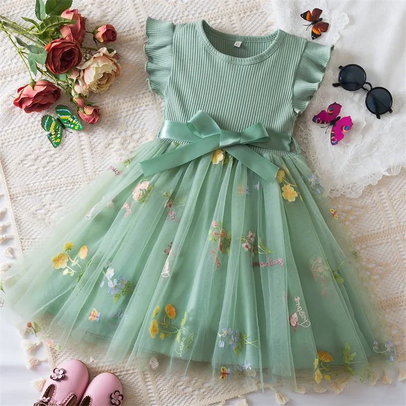 فستان مطرز بالزهور للفتيات ، ملابس صيفية ، قطن ناعم ، فستان عطلة للأطفال ، فساتين أميرة للأطفال ، جديد ،